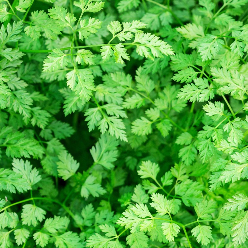 Chervil (Anthriscus cerefolium) - Chervil is a popular herb where its root and leaves are used. The chervil herb root for example, is used raw or cooked, but should be done with caution as some reports indicated the root to be poisonous. The raw root is rather tough, but has a nice, aromatic, starchy flavor. When cooked it becomes floury and sweet with a peculiar flavor that is excellent and unlike any other vegetable. Peeling the roots ruins the flavor. The root is about the size of a small carrot. It can be harvested when the foliage dies down, usually in July/August from an autumn sowing, and stored like potatoes for later use. It is best harvested as required. More popular are using the chervil leaves as an herb. Chervil has a subtle anise-parsley flavor which can be a delicious addition to green salads, omelets and soup. People use chervil with fish, carrots, corn, eggs, asparagus, potatoes, peas, spinach, and sorrel. The hardest part of growing chervil is to keep the plants from going to seed. Chervil plants will go to flower when the days are long and the weather is hot. Sowing chervil herb seeds every two weeks until the weather is hot will give you a constant supply of leaves. Keeping flowers cut will encourage leafy growth. Chervil grows best in cool weather and light shade. Full sun will bleach out its delicate foliage. You can harvest leaves about 6 to 8 weeks after sowing. Pick the outside leaves of each plant and allow the younger leaves to continue growing. Harvesting chervil frequently will promote leaf growth and delay flowering. The flavor is best just before flowering and in cool weather.
