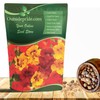 Tropaeolum majus is commonly referred to as Nasturtium. This mix, Jewel Mix, has 2 - 3 inch, blooms that range in color from red to orange to yellow. The grayish green leaves are rounded or kidney-shaped and can be 2 – 5 inches across. It’s a spectacular sight climbing up an arbor or trellis! Nasturtium is not picky; it will climb anything close by even fences, out buildings or tall shrubs! Nasturtium will flower in 8 – 12 weeks after starter the seeds. It will grow quickly and have blooms from summer through fall. Nasturtium seed is large and it has a hard seed coat. It requires a 24 hour soak in water or to file the seed gently to break the coat open. Nasturtium does not always transplant well, so many gardeners start the seed directly outdoors in spring. Prepare a seedbed by loosening and weeding the soil. Keep seed moist until germination. With a temperature of 68F, germination normally occurs within 10 days. Space the plants 8 - 12 inches apart. Grow in full sun and in well- drained soil. Nasturtium is usually resistant to deer.