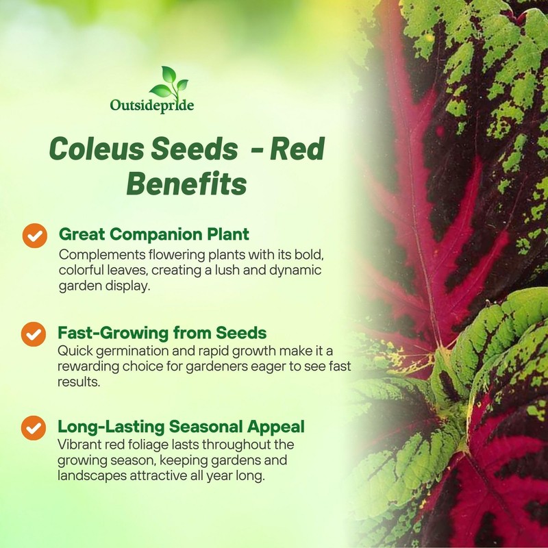 Outsidepride Outsidepride Kong Red Coleus Seeds for Planting - 10 Pcs Annual, Compact, & Easy to Grow, Flower Seeds with Serrated Foliage, Ideal for Shaded Areas, Containers, Borders, & Gardens