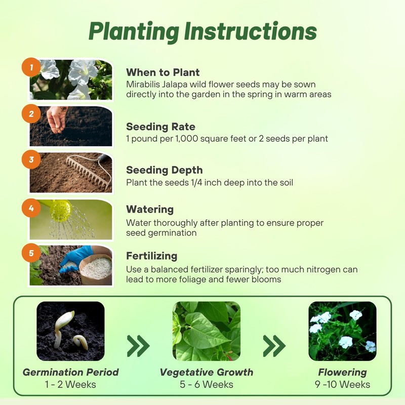- EASY PLANTING & LOW-MAINTENANCE: Sow 2 perennial seeds per plant at a 1/4-inch depth, spacing them 12–24 inches apart in well-drained soil. Our four o'clock seeds require minimal care, naturally keep deer away, and their self-seeding habit ensures they return yearly in the right environment, making them a great choice for perennial flower seeds for planting outdoors.