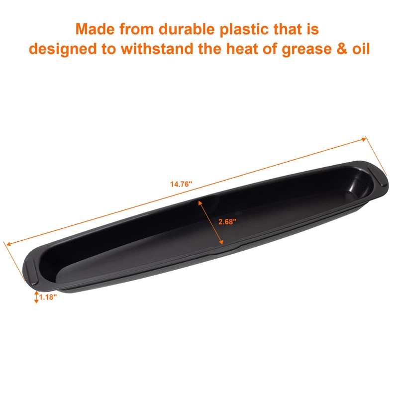 - 【Package】Including 1 pack Drip Tray Pan,dimension:14.76"L x 2.68"W x 1.18"H + 1 pack Grill Scraper,dimension:3.15"L x 1.97"W