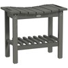 Transform your space with the versatile Outsunny Shower Table! Designed for both outdoor and indoor use, this stylish table doubles as a bench for seating or a small patio-side storage rack. Crafted from HDPE, it resists warping and fading while offering convenient shelving with its dual-tier design. Great as a outdoor footstool or plastic bench, it adds charm and functionality to any setting.