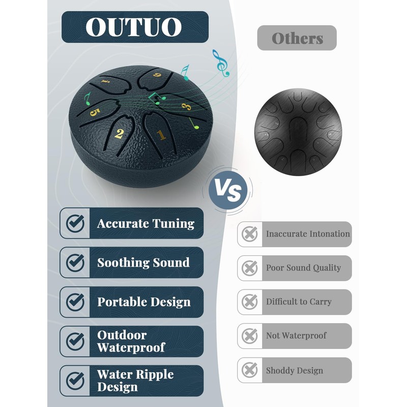 OUTUO Steel Tongue Drum: 3 Inch 6 Notes Rain Drum for Outdoor Use, Hang Drum Instrument, Handpan Drum for Kids, Sound Healing Meditation (Navy blue)