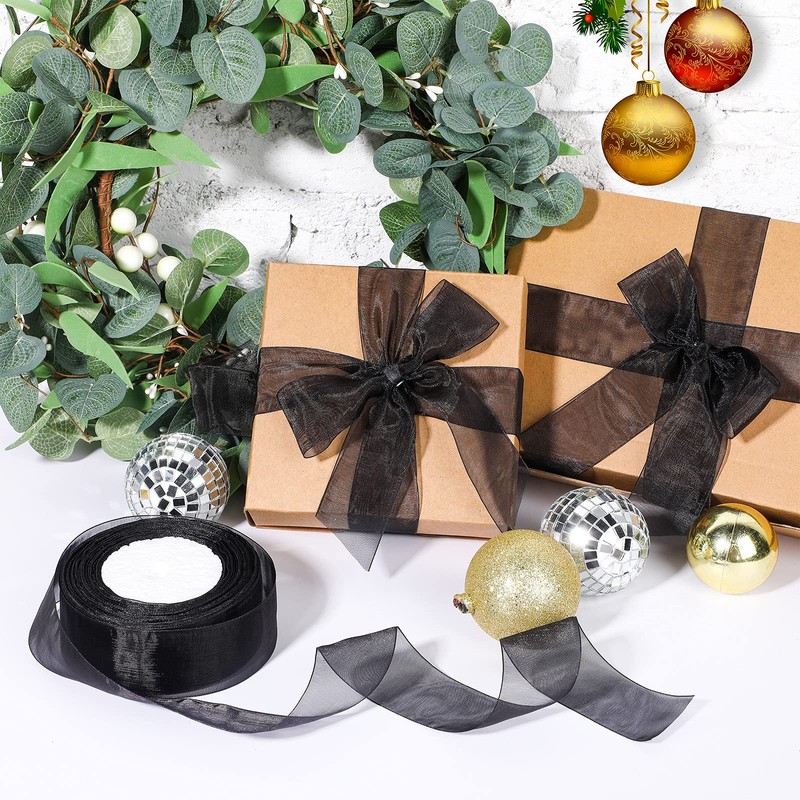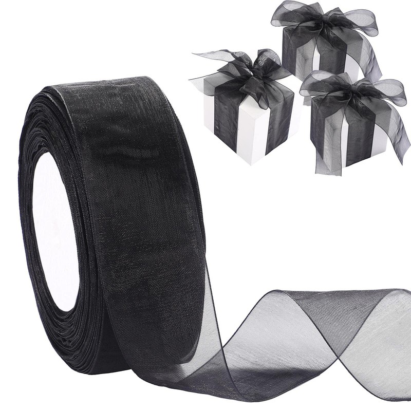 Outus Sheer Organza Ribbon for Gift Wrapping Sheer Chiffon Ribbon Tulle Ribbon Mesh Ribbon Clear Fabric Ribbon Weeding Christmas Tree Decor DIY Crafts(1.6 Inch Wide 49 Yard Long,Black)