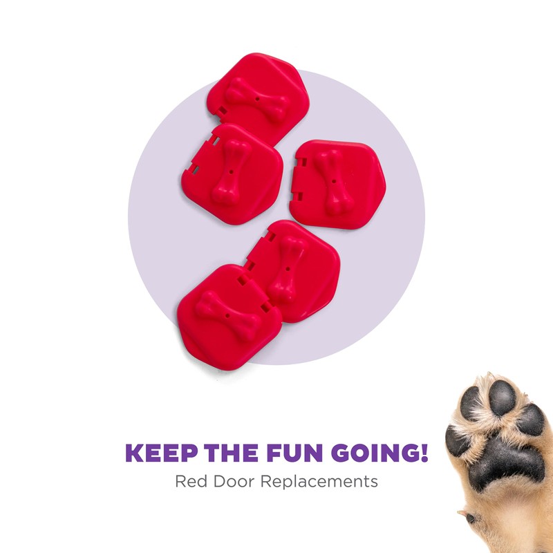 - KEEP YOUR PUP PUZZLING: Simply snap doors into hinges of the red boxes of Nina Ottosson's Dog Brick compartments.
