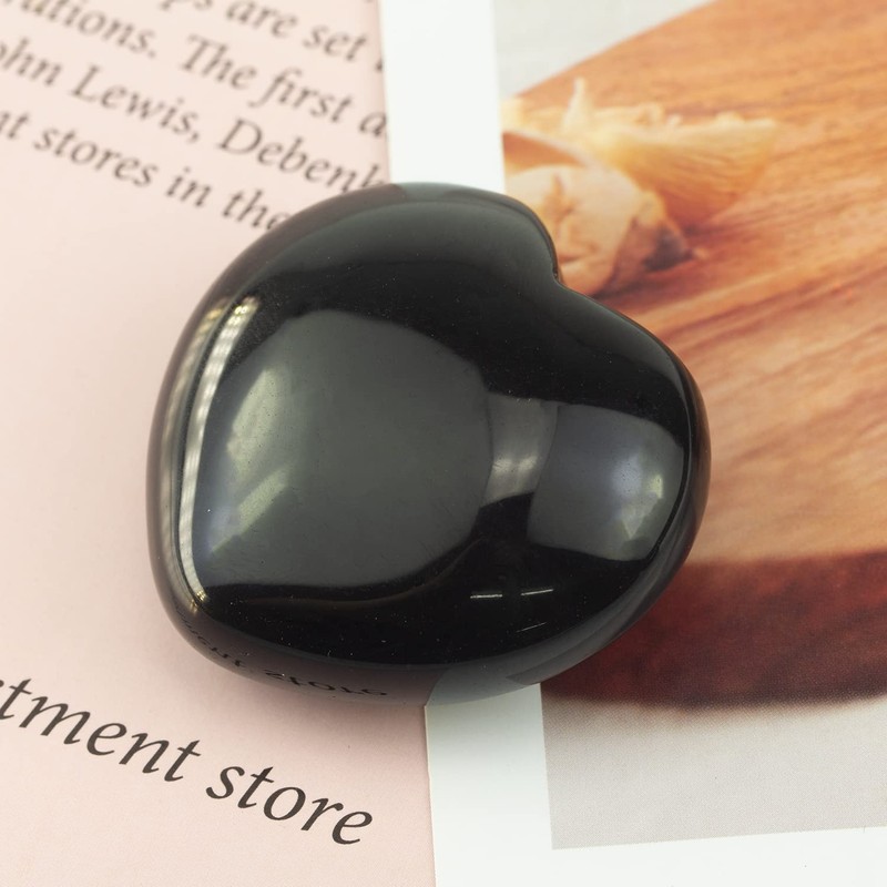 Ouubuuy Gemstone Obsidian Heart Lucky Charm Palm Tree Stones Energy Crystal Healing Stone 4 cm