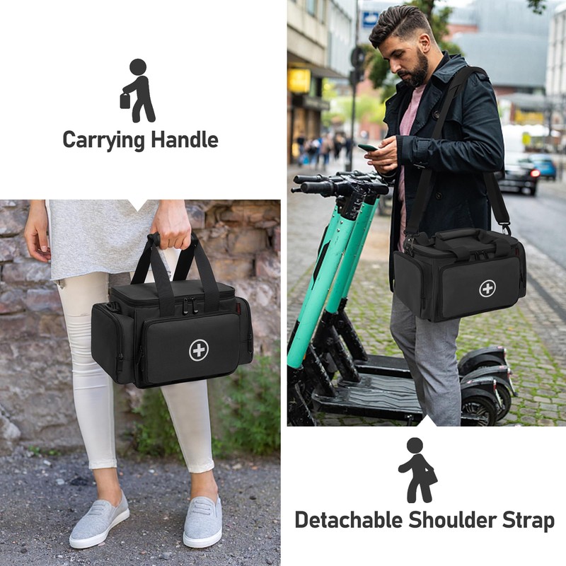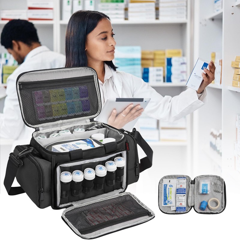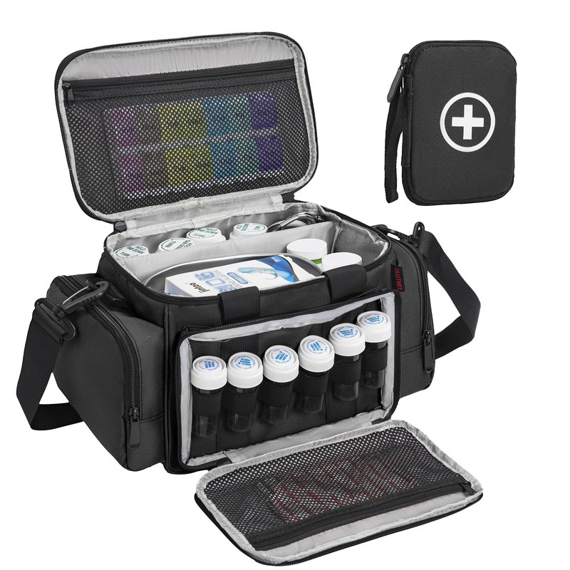 - Easy To Carry: Our pill bottle organizer bag comes with an adjustable shoulder strap and carrying handle and a portable pouch. It can be placed in the car as well as outdoor travel, easy to carry on the go for travel and home use