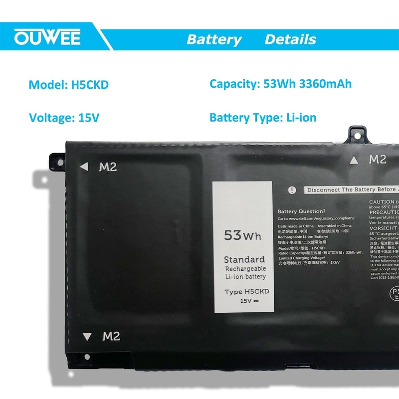 OUWEE H5CKD Laptop Battery Compatible with Dell Vostro 5300 5401 5501 Latitude 3410 3510 Inspiron 5300 5401 5408 5501 5508 5400 7405 7300 7500 2-in-1 Silver Series 07T8CD 0TXD03 09077G JK6Y6 15V 53Wh