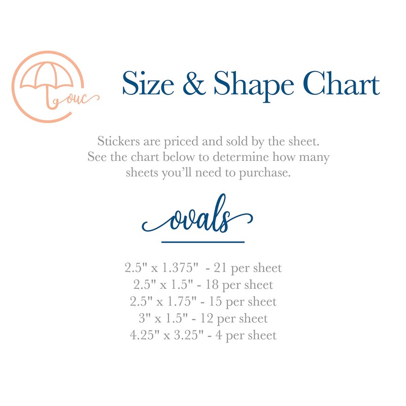 - Each quantity purchased is equal to one sheet; each size has a specific number of stickers per sheet. See the "quantity per order" chart in the images for more information.
