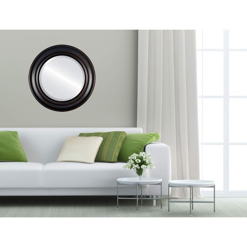 OVALCREST Round Beveled Wall Mirror for Home Decor - Lancaster Style - Rubbed Bronze - 19x19 Outside Dimensions