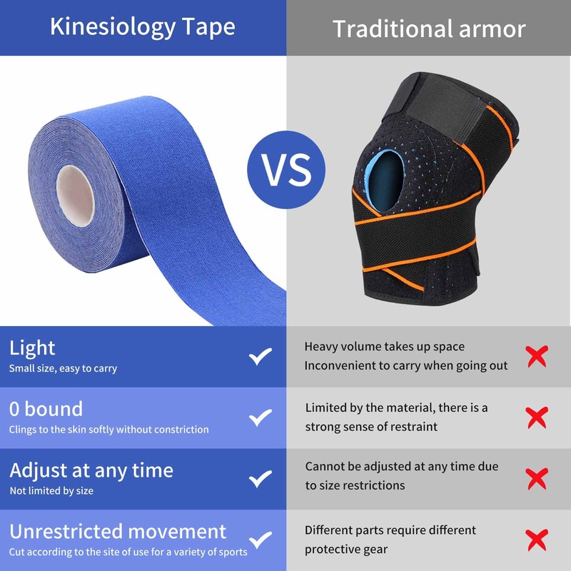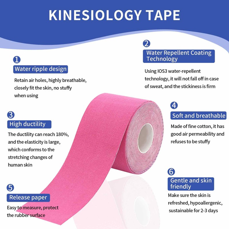 • Muscle Tape:Physio tape is highly elastic and can be extended to 50% of its original length without losing elasticity. K-Tape offers varying degrees of stretch to support injured muscles and joints while ensuring safe, painless range of motion.