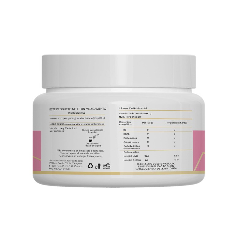 - 5.85 gramos de Myo inositol y 0.15 gramos de D-chiro inositol por porción. Fórmula basada en la evidencia científica más actual.