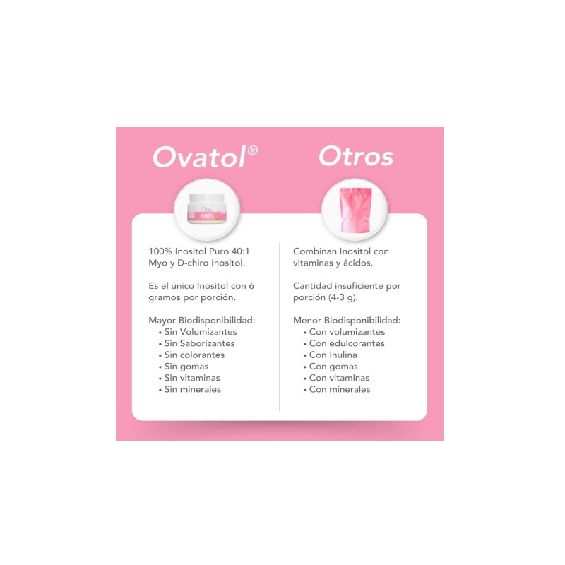 Ovatol® Inositol puro 6000mg por porción | Myo y D-Chiro en un Radio 40:1 la Mezcla Optima | Suplemento Para Mujer con Alta Biodisoinibilidad | | Libre de voluminizantes ni agregados | Sin agregados | Certificado |