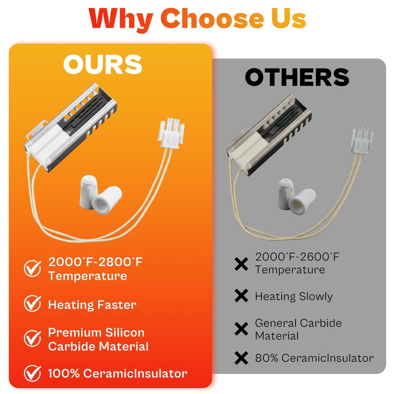 • RAPID HEAT UP -- Our sam-sung oven igniter replacement features an advanced design that reaches temperatures from 2000-2800°F in less than 60 seconds, efficiently igniting your oven to ensure a quick start-up, shortening preheating time and increasing efficiency in your kitchen