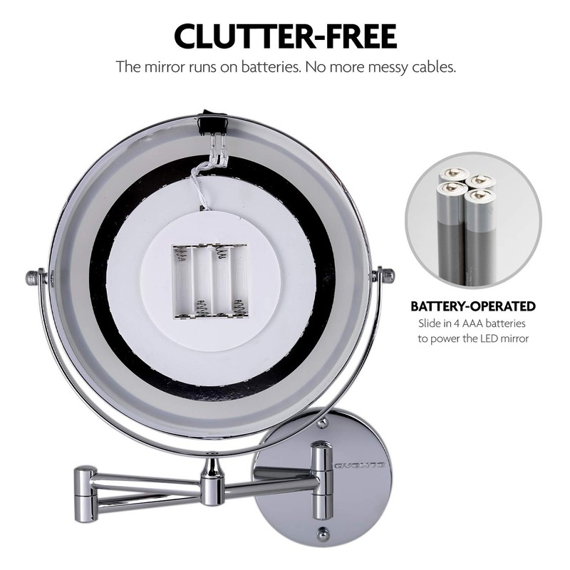 - BATTERY OPERATED - This mirror is powered by 4 AAA batteries (not included).