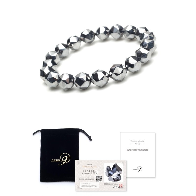 OVER-9 Terahertz Ore Bracelet, Star Cut, 0.4 inch (10 mm), Tested by Public Institutions! Men's and Women's Power Stone, Natural Stone, Far Infrared, Genuine Guaranteed, Gemstone, Health, Beauty, Arm,