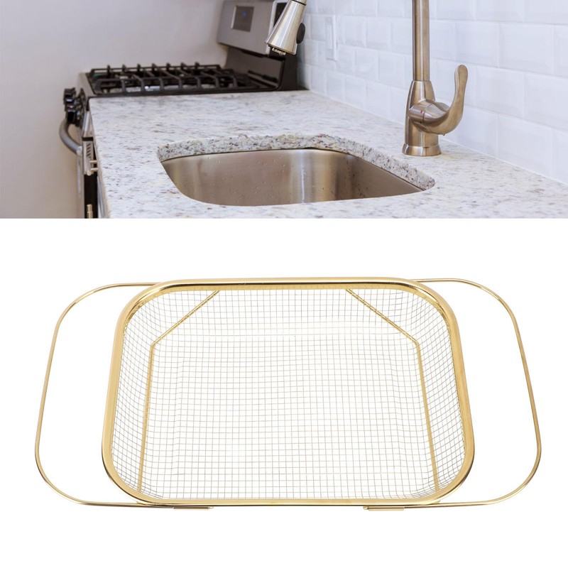 Over The Sink Colander Strainer Basket Stainless Steel, Expandable Fine Mesh Colander For Kitchen Sink with Handles, Kitchen Essentials - Rinse Drain Strain fruits vegetables