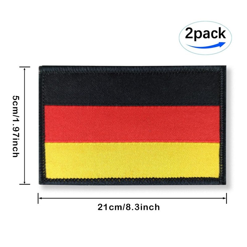 • SPECIFICATION: Set of 2 Germany patches with hook-fastener backing per pack. The right size (3.2 x 2 inch/8 x 5cm) allows it to be sewn into any garment.