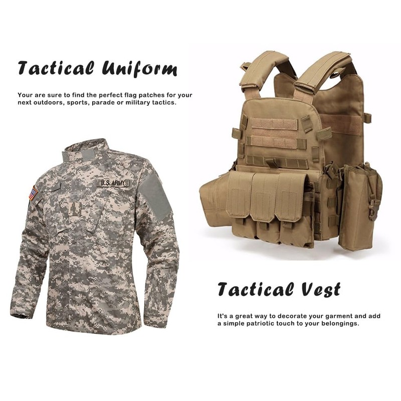 • VERSATILE: Imported. Made of 100% polyester. Perfect decorations for military uniform, tactical bag, jacket, vest, backpacks, hats, etc. It's a great way to decorate your garment and add a simple patriotic touch to your belongings.