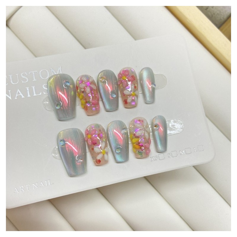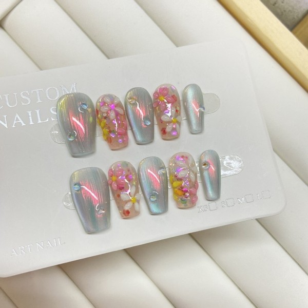 [Overseas] Luxury nail sticker artist handmade nail patch 3D hand-drawn multi-color wave pattern nail patch M/Short T 4ea