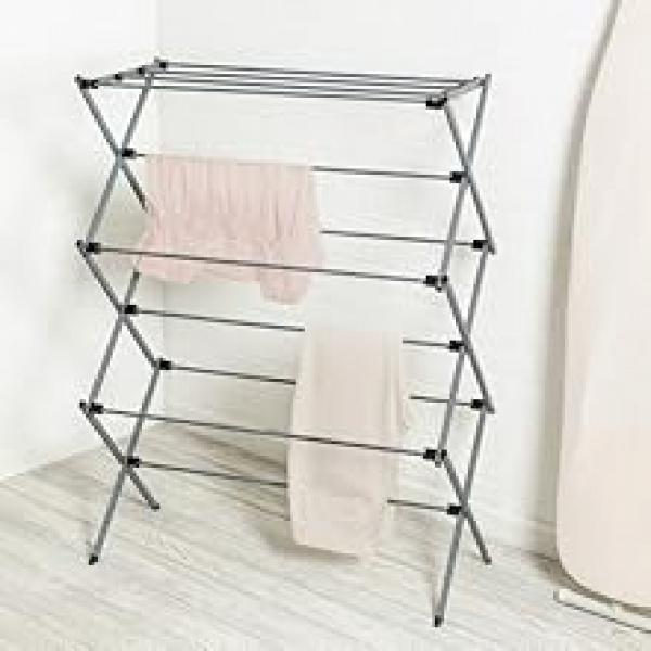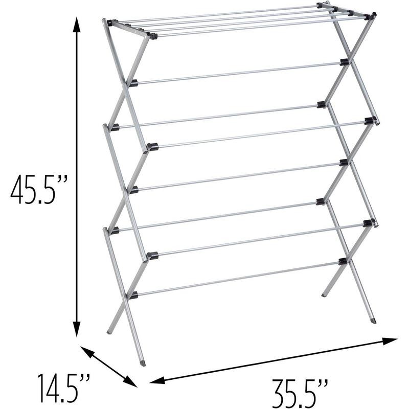Oversize Collapsible Clothes Drying Rack Description The list of clothing items that should never see the inside of a clothes dryer is long: lingerie, swimsuits, workout clothes, wool sweaters, cashmere scarves. These things require being hung to dry, which would be great if you only had the room. Pull this not-so-little guy into action and it goes from flat to 45 inches tall, with plenty of room to line-dry your delicates.