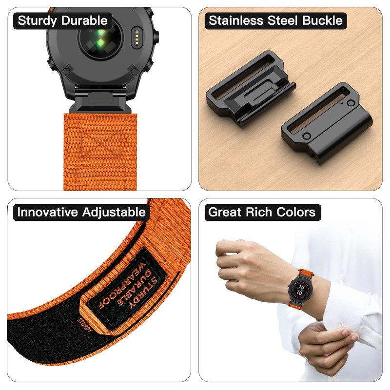 - 22MM COMPATIBLE MODELS --- Nylon Knitting Elastic Watch Bands Compatible with Garmin Fenix 8 AMOLED/MIP/E - 47mm, Fenix 7, Fenix 7 Pro, Fenix 7 Solar, Fenix 7 Sapphire Solar, Fenix 6, Fenix 6 Pro, Fenix 6 Sapphire, Fenix 5, Fenix 5 Plus, Epix Pro 47mm, Epix Gen2, Epix Pro Gen2, Descent G1, Approach S62, Quatix 5, Quatix 5 Sapphire, MARQ, Forerunner 965, 955, 945, 935. NOTE: The Smart Watch is NOT included.