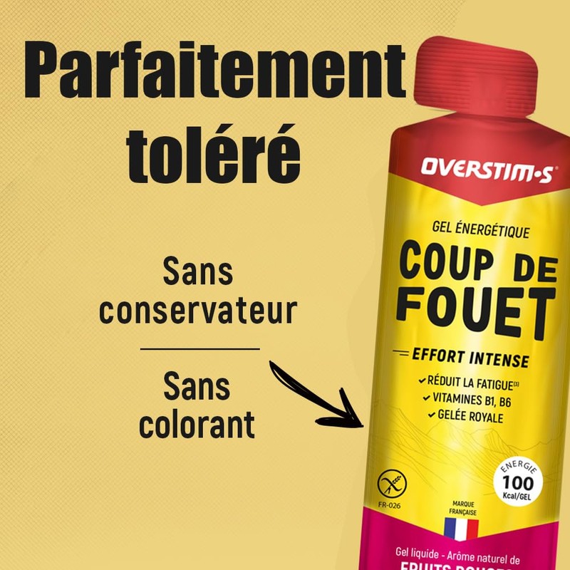 OVERSTIM.s - Gel Coup de Fouet (x10) - Energy gel for sports (cycling, running) - Instant energy - Intense effort and difficult sections - 100 kcal/gel - Red fruits