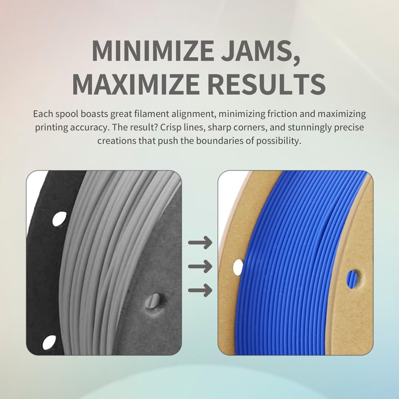 - Less Tangle & Hassle Our meticulous winding and manual inspection guarantees a tidy, tangle-free filament. Featuring a larger inside diameter, our spools minimize friction for smoother feeding, ensuring a hassle-free printing experience