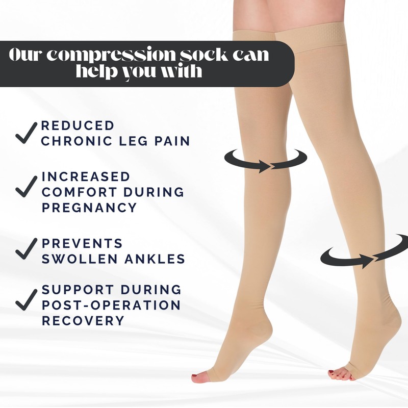 OVISSA Medical Ultra Stretchy Compression Beige Stockings Open Toe Thigh For Women & Men Breathable Sweat-Absorbent Material For Varicose Veins, Edema, Air travel, Nursing, Running (20-30mmHg) - 16