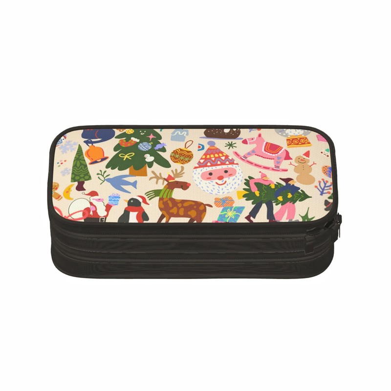 OWCRNEF Canvas Pencil Case Box Large Capacity Christmas Beige Black Pencil Bag Pouch Marker Organizer with 2 Compartments Zipper