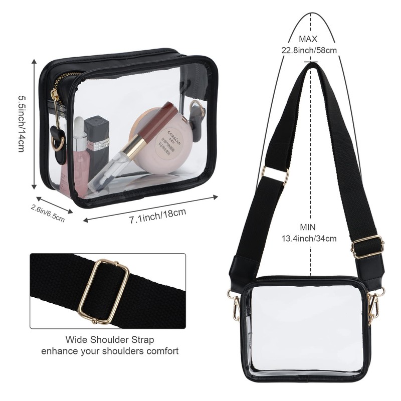 - Sports Concert Clear Bags -- This clear purse is stadium approved, completely meeting stadium tournament bag policy, helping you pass the security check easily and quickly.Perfect purse for sporting events/concert/festivals/events requiring a clear bag.