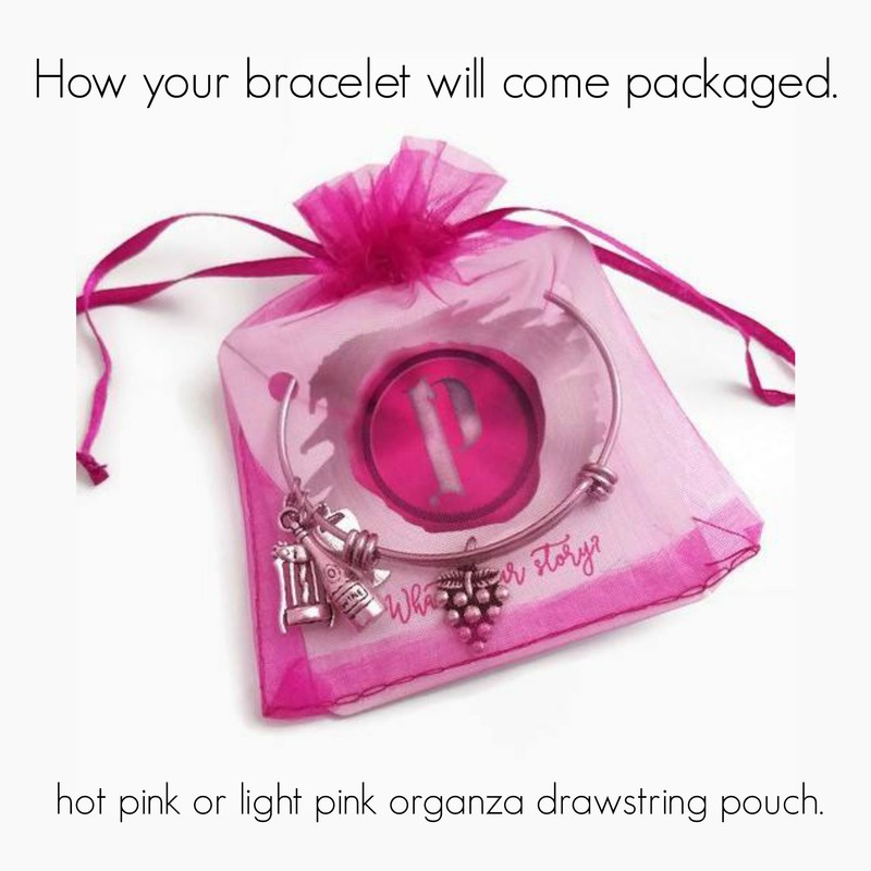 Expandable bracelet expands and adjusts to get over your wrist. Measures 60mm in diameter (not expanded) and will fit most wrist sizes. Makes a nice addition to the stack on her wrist. Comes in a drawstring organza pouch ready for gift giving.