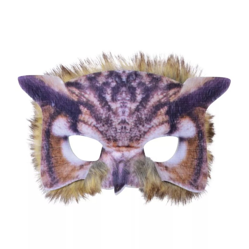 Plastic owl face mask with photo-real printed fabric has faux fur and pretend whiskers embellishment. Fits most people ages 6 and up.Half mask is an easy dress up choice, turning even everyday clothes into an animal costume.