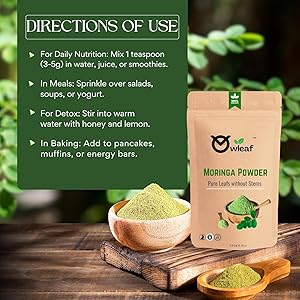 - Premium Quality Moringa Powder: Made from 100% organic Moringa leaves, our powder is carefully harvested and dried to preserve all its nutritional benefits.