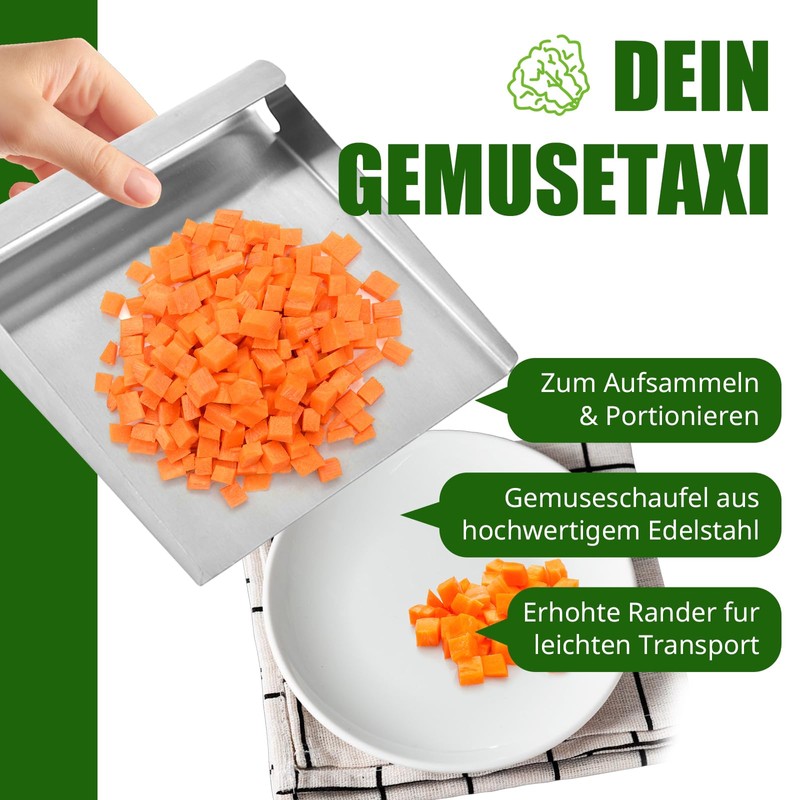 - Safe transport: kitchen spatula. Thanks to the raised edges, the cut vegetables stay securely in place during transport and do not slip off the practical shovel.