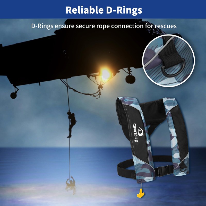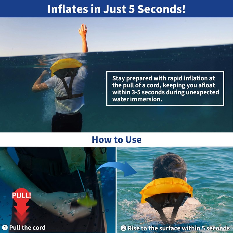 - Fast Inflation: Inflate in under 5 seconds by pulling the manual cord for quick and efficient flotation when needed
