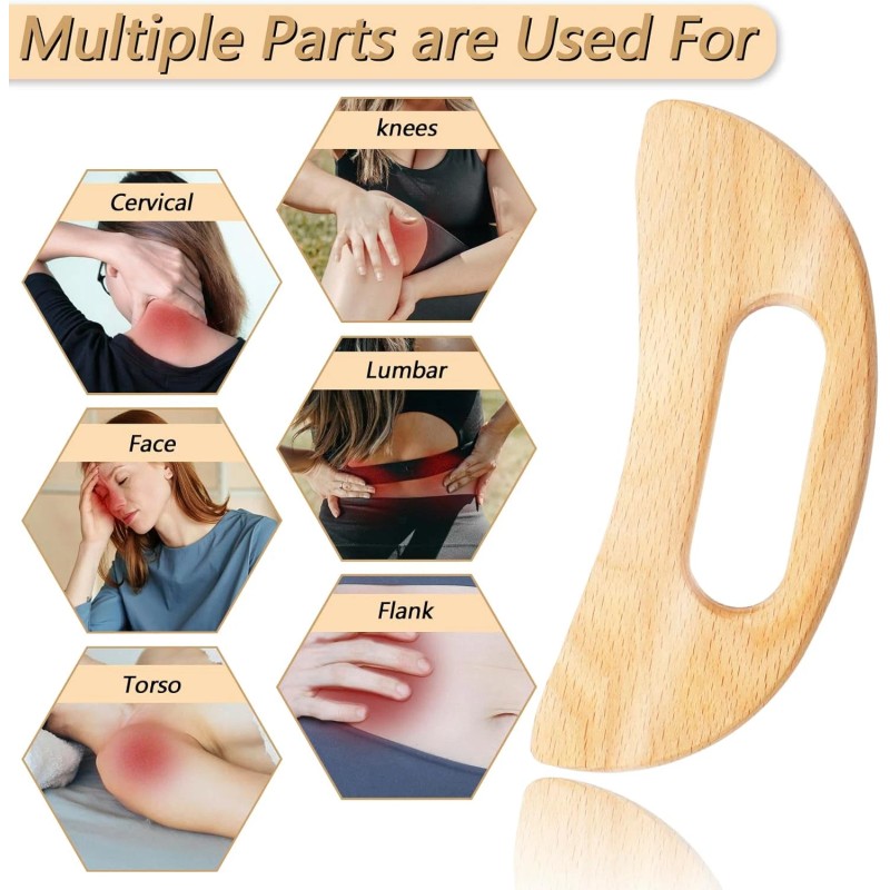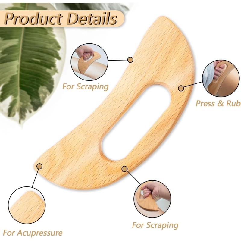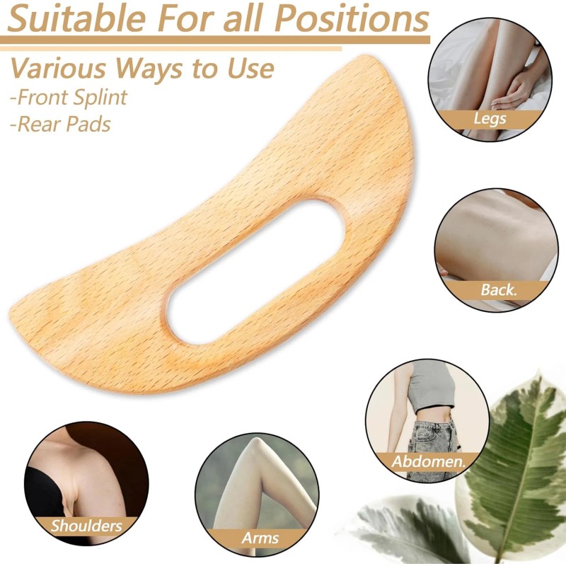 - Ergonomic Design: Featuring an ergonomic anti-arch design and varied edge shapes, this wooden gua sha cellulite massage board allows for targeted scraping, pressure relief, and acupressure. Perfect for easing muscle tension, reducing stress, and promoting blood circulation, especially when used with massage oil