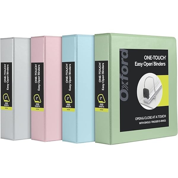 Oxford 3 Ring Binders, 2 inch ONE-Touch Easy Open D Rings, 3-Sided View Binder Covers, Binders for School, Xtralife Hinge, Non-Stick, PVC-Free, Natural Pastel, 530-Sheet Capacity, 4 Pack (79923)