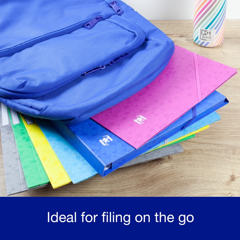 • Elasticated files made from strong and resistant 390gsm multi-layered card with Coloured elastic closure strap