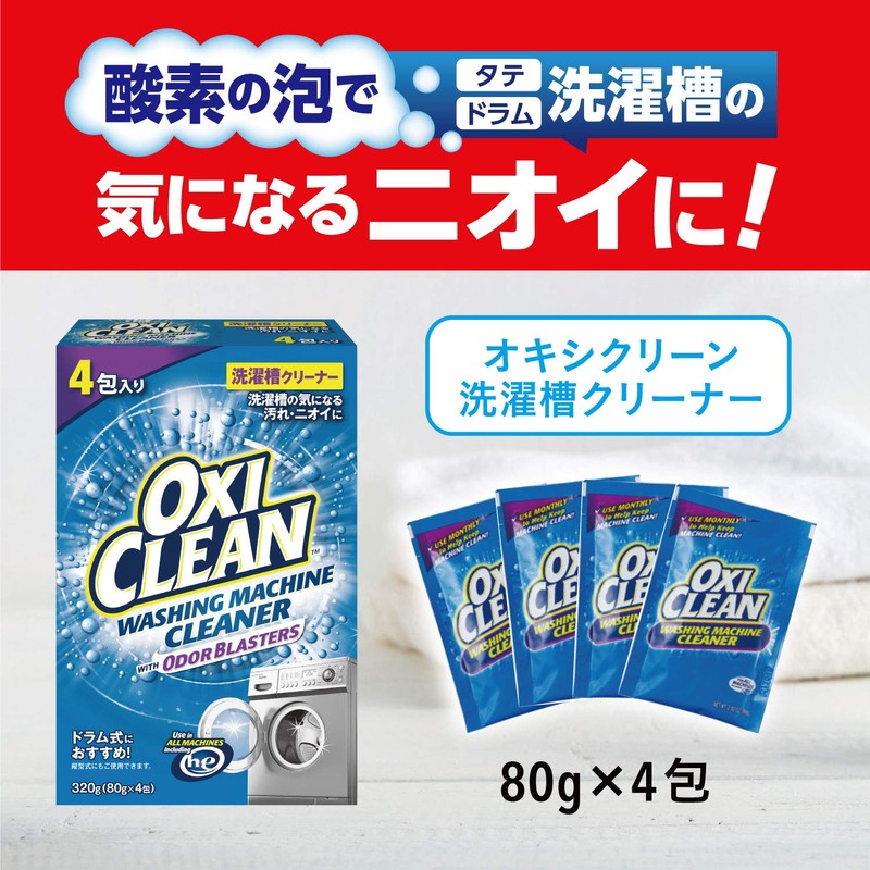 OXICLEAN Oxiclean Laundry Tank Cleaner, 11.8 oz (320 g) (2.8 oz (80 g) x 4 Packs), Washing Machine, Deodorizing, Sterilization, Chlorine Free