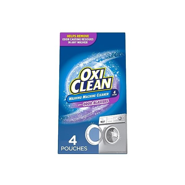 Help remove odor-causing residues in your washing machine with OxiClean Washing Machine Cleaner with Odor Blasters. If you've noticed odors on your clothes, your washing machine might be the cause. These pre-measured pouches combine Odor Blasters with the power of OxiClean to clean your washing machine, remove odors, and help keep it smelling fresh. To use, tear one washer cleaner pouch and toss into an empty washer without clothes or other items. Select the Clean Washer Cycle and run the machine without laundry detergent. If the washer doesn’t have a Clean Washer Cycle, run in a normal hot water cycle. After the cycle is complete, wipe away any remaining residue with a towel and leave the washing machine door open to allow better ventilation. For maintenance, use OxiClean washing machine cleaner once a month to help keep your HE or standard washing machine looking and smelling clean. For existing odors and residues, use once a week for three consecutive weeks, then once a month thereafter for maintenance. Includes one 4-count box of septic-safe OxiClean Washing Machine Cleaner with Odor Blasters. From stain removers and laundry boosters to household cleaners and much more, OxiClean offers a product to fit your needs.