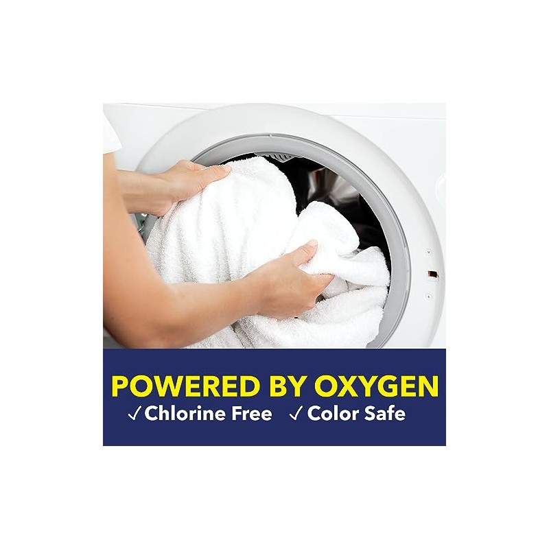 • Chlorine-free, color-safe clothes whitener revives dingy whites without risking chlorine spills and splatters on colored clothing