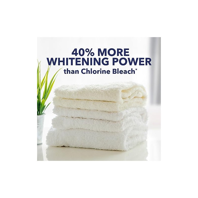 • Oxygen-based, water-activated chlorine bleach alternative detergent booster whitens whites 40 percent better than chlorine bleach per load