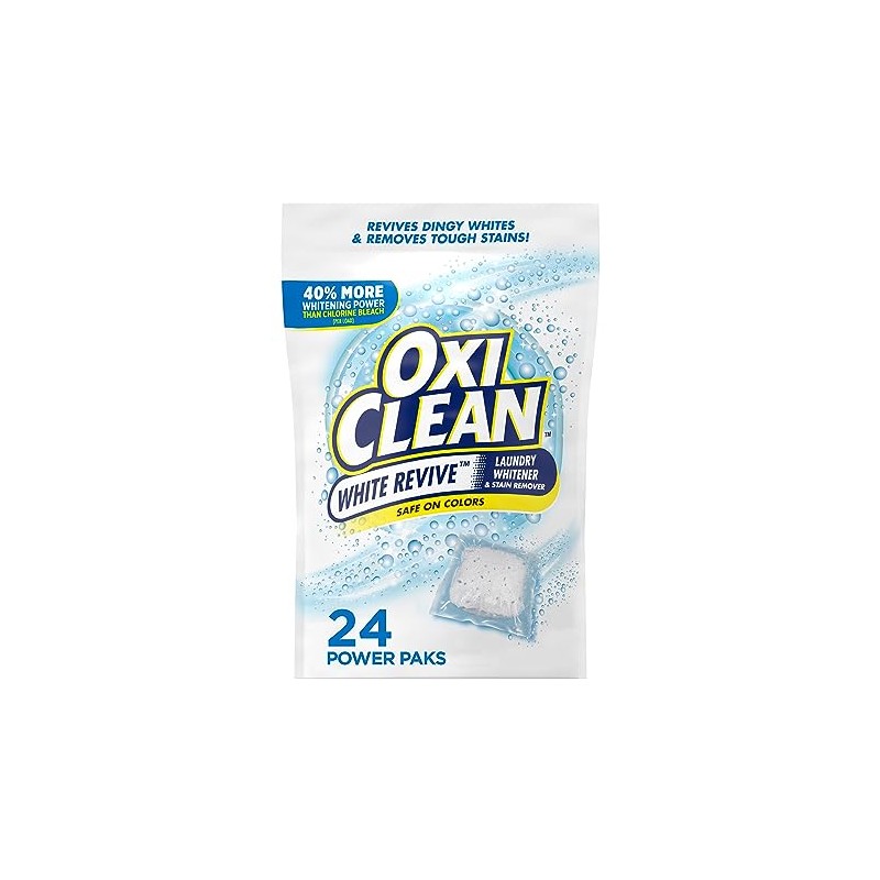 • One 24 count bag of OxiClean White Revive Laundry Whitener and Stain Remover Power Paks to revive brilliant whites