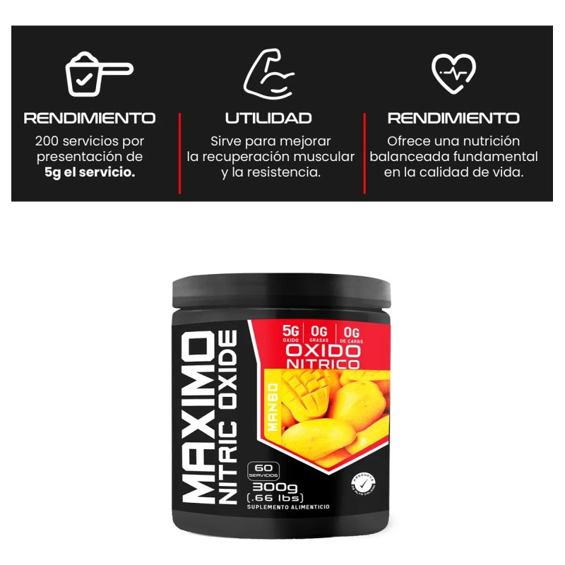 Óxido Nítrico Pre Entreno Maximo Protein 300g 60 Servs Mango