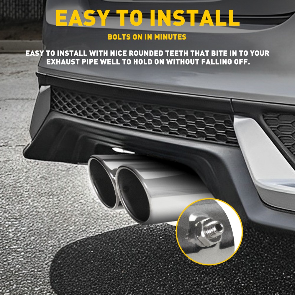 Bolt-on Installation: slide on easily over your existing tailpipe, then secure in place with bolts.