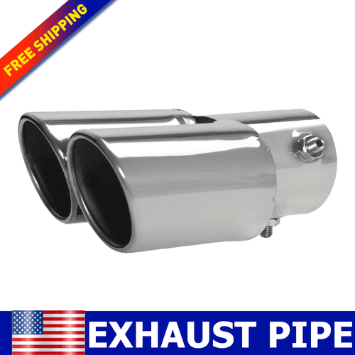 1x Silver Dual Outlet Exhaust Tip Tail Muffler Tip For 1.4"-2.5" Stainless Steel