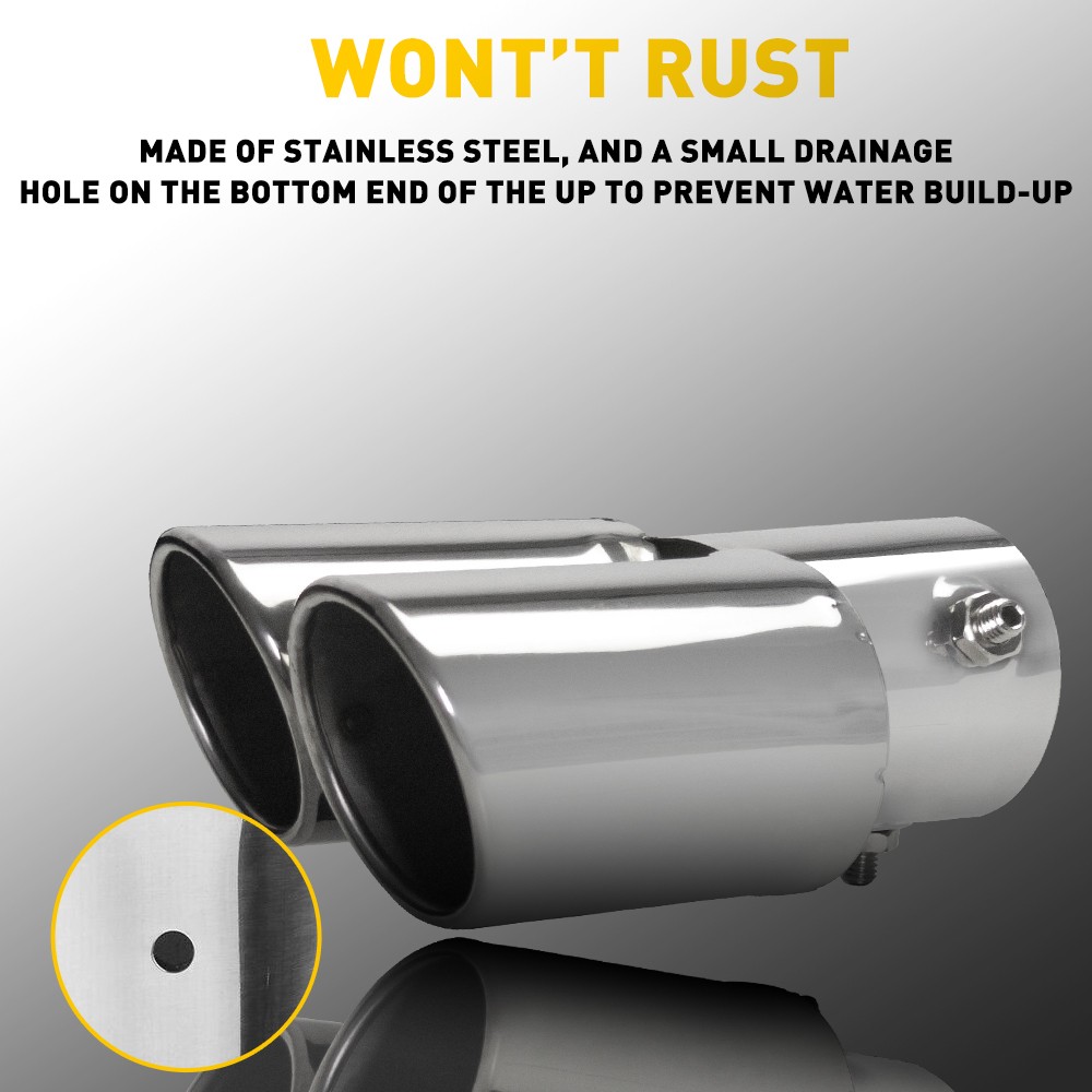 OXILAM 1x Silver Dual Outlet Exhaust Tip Tail Muffler Tip For 1.4"-2.5" Stainless Steel