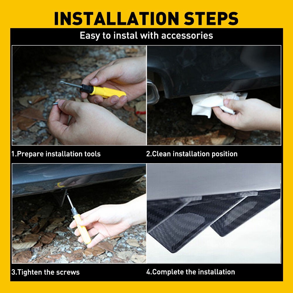 4 PCS Diffuser Shark Fin Spoiler Lip Universal Rear Bumper Splitter Carbon Fiber
