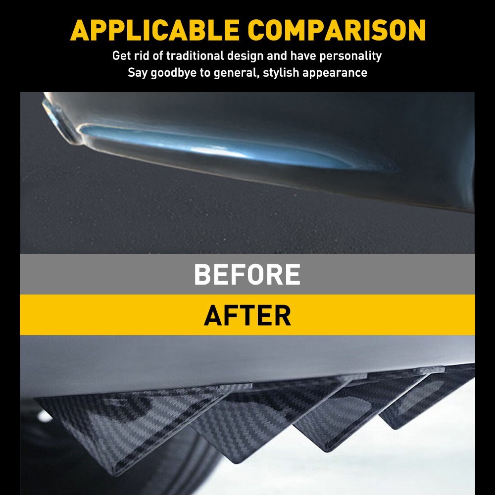 OXILAM 4 PCS Diffuser Shark Fin Spoiler Lip Universal Rear Bumper Splitter Carbon Fiber